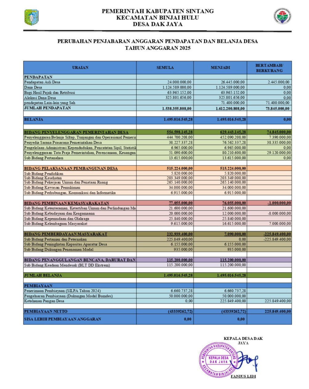 Anggaran Pendapatan dan Belanja Desa Dak Jaya